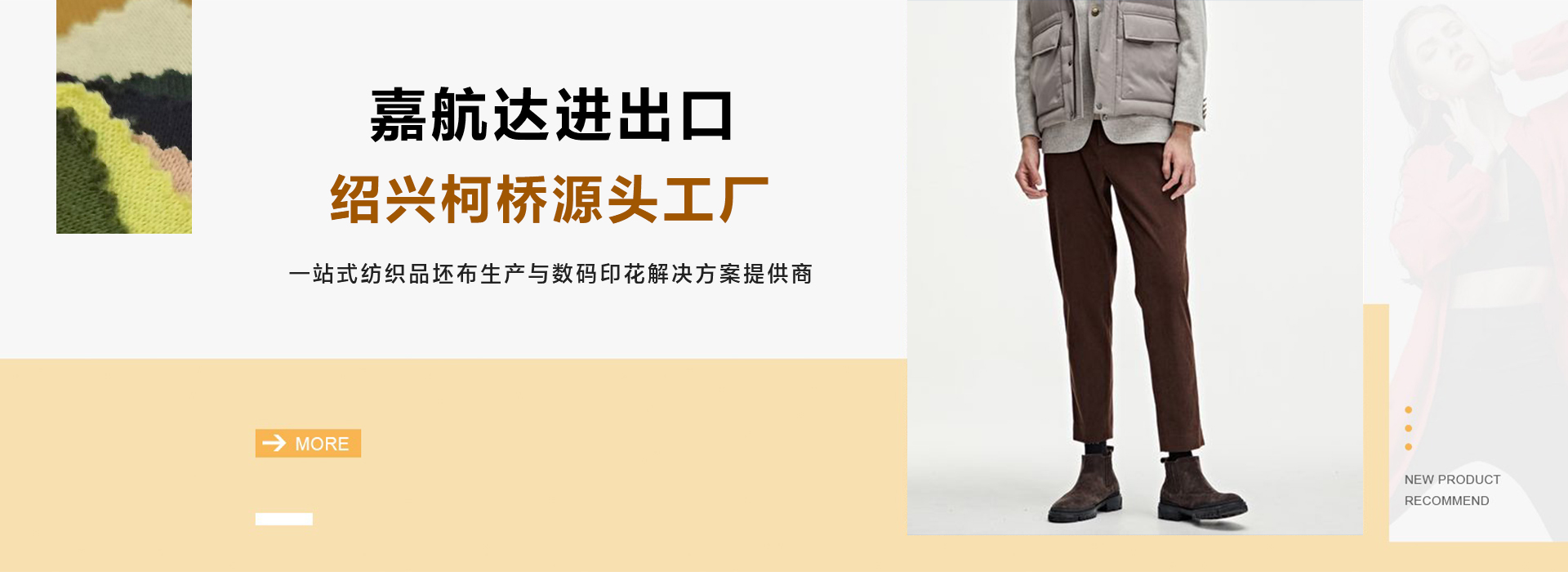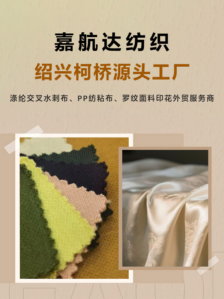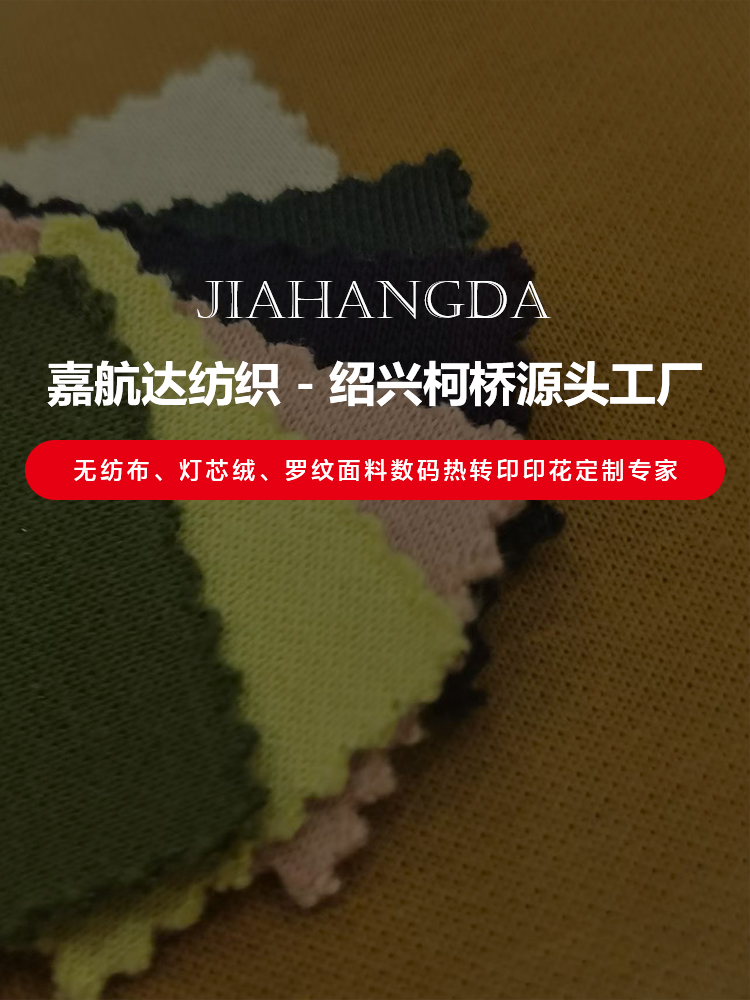 绍兴嘉航达纺织品进出口有限公司,扎根绍兴柯桥纺织产业核心区,专业生产涤纶交叉水刺无纺布、PP纺粘无纺布,主营涤纶经编灯芯绒、罗纹面料的数码热转印印花加工,同时覆盖经编仿超、超柔、氨超等面料印花业务。依托本地产业优势,我们具备500吨级大单交付能力,产品通过OEKO-TEX100、REACH等国际认证,直供欧美家纺、服装、卫材领域大客户,支持30%预付款+70%信用证结算,以定制化服务与稳定品质,为海外合作伙伴赋能。